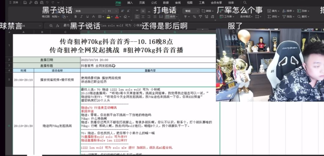 这一切都是剧本,从那天他(指70KG)首播,就让我们去跟他们(指AG战队)线上约战,到他们输给我们,然后再到他们破防质疑我们开挂,然后两方线下28号约战,再到让我直播拒绝,全都是安排好的剧本。