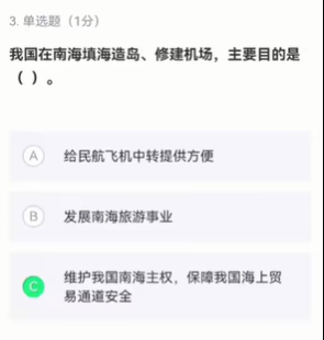 C维护我国南海主权,保障我国海上贸易通道安全