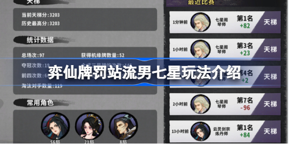 弈仙牌是一款卡牌休闲吃鸡类型的竞技游戏,在游戏里面玩家需要不断地去进行大赛的挑战来获取提升实力的资源,很多玩家不知道罚站流男七星该怎么玩,下面就让我们来看看弈仙牌罚站流男七星玩法介绍。