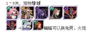 1-9关:宠物绿球,其中蝙蝠可以换成兔男、火娃