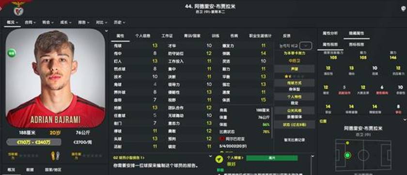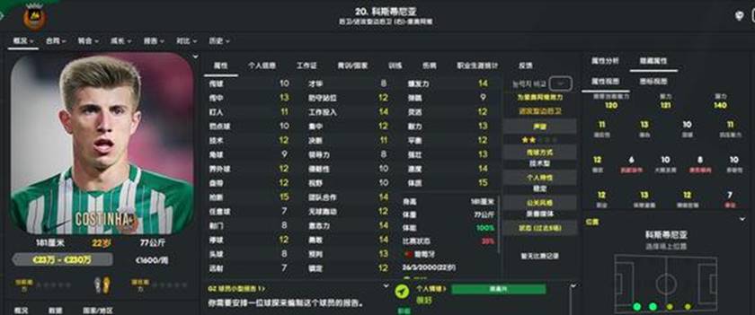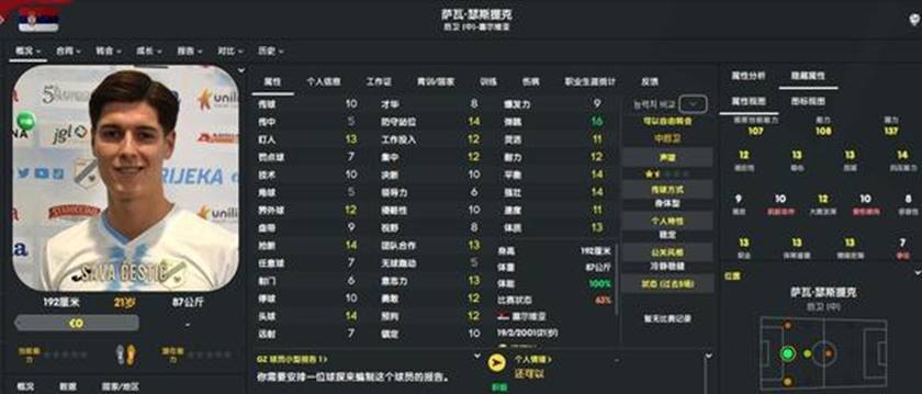 性价比非常高的一名中后卫,固定潜力137。身高和弹跳都没有问题,适合一些次级别联赛免签。不确定是否需要“塞尔维亚超级联赛”的数据库。