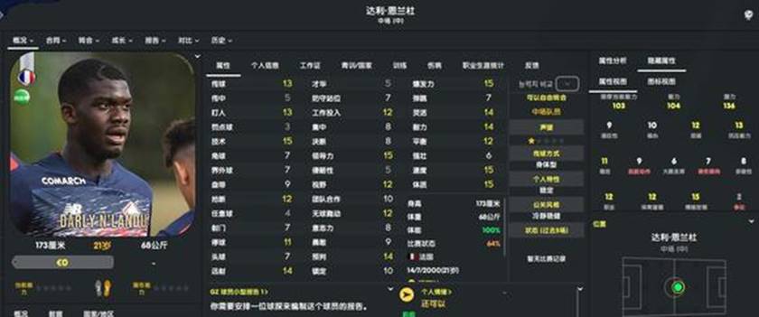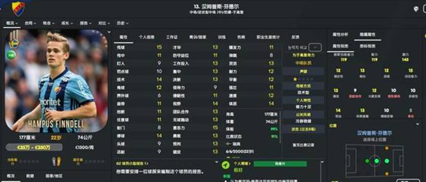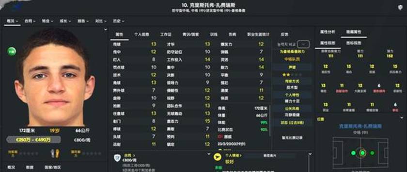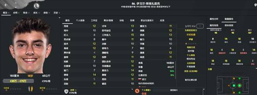 上一代就是性价比非常不错的中场小将,本代依旧推荐,练满也是顶级联赛主力级别的水平。