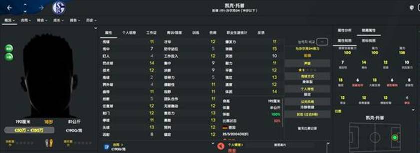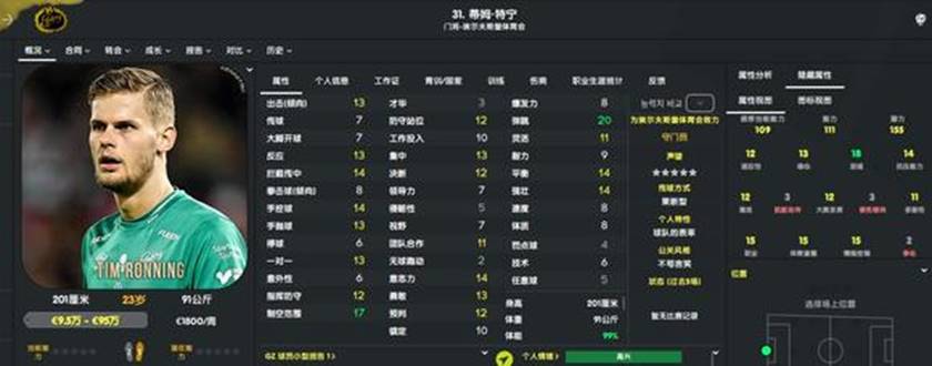 性价比非常不错的一名年轻门将,职业只有7但是雄心和意志力双高,练起来应该问题不大。