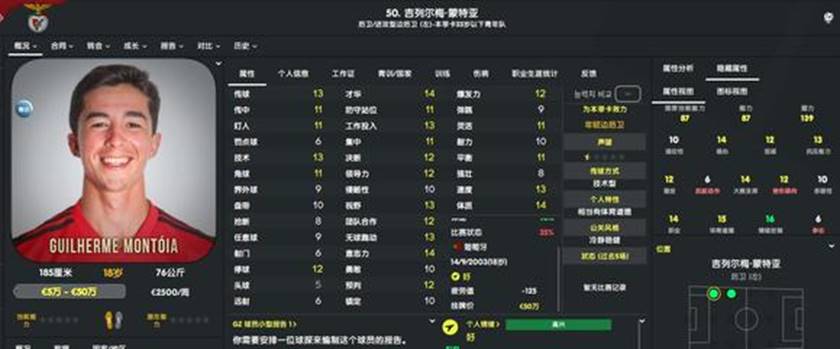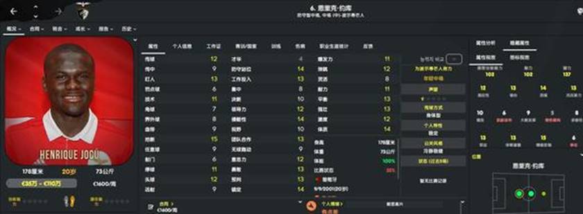 本菲卡的妖人确实是有东西的,这个小将最高能随到150的潜力,练满问题不大,性价比很高。
