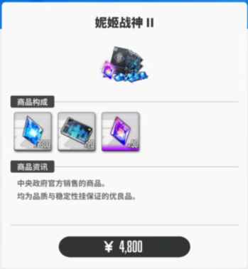 妮姬战神2+3(首次购买 4800+8800),队员招募礼包1+3+4(每月 2400+8800+15800),