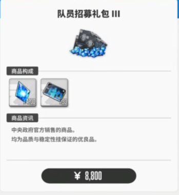 在抽卡券性价比上低于首次购买,低于月招募礼包,低于通行证,不推荐购买。
