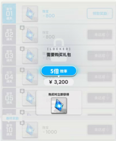 3200档 战役礼包:10000钻 通行证:25张抽卡卷+50橙水晶+皮肤