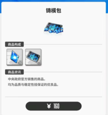 不推荐购买铸模包、武器包、礼品包。如果想急切推图,技能包确实可能解燃煤之急,可以买一两天,从前期资源获取上,芯尘(红球)包以及信用(金币)包和数据(经验)包都好于周礼包。