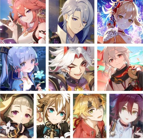 分别是八重神子、神里绫人、神里绫华、宵宫、一斗、万叶、托马、五郎、早柚、鹿野院平藏。