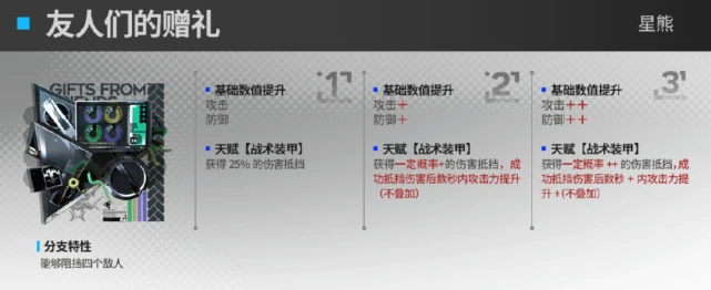伤害抵挡的概率得到了提升,成功抵挡伤害后,数秒内攻击力提升(不叠加)