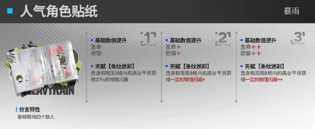 天赋方面的强化主要是针对群体迷彩效果效果,物理闪避的概率得到进一步提升。