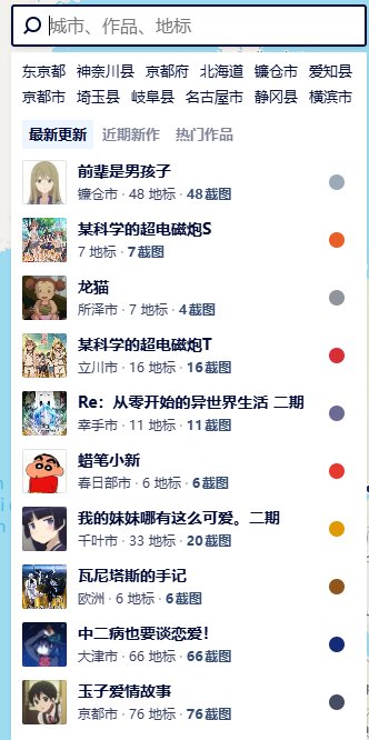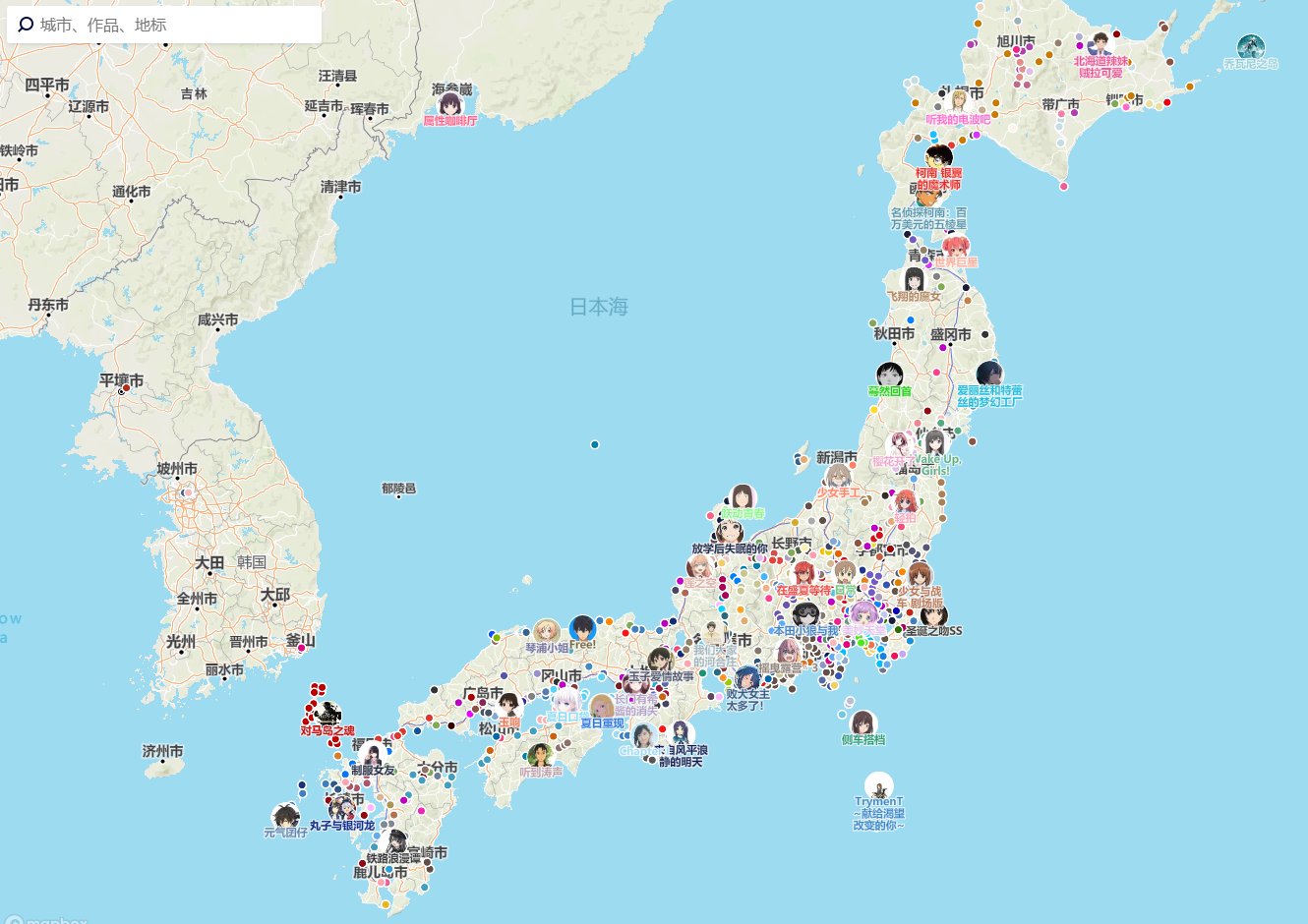 虽然粉丝们对圣地巡礼一直都抱有一颗向往的心,但是时间和精力可就不是每个人都有的了。不过!我倒是在网上发现了一个叫“巡礼地图”的好东西,足不出户就能实现云打卡,网站在这里哦:https://anitabi.cn/map打开就能看到全球各地有圣地的点了,要这么看的话其实能打卡的点还挺多的。