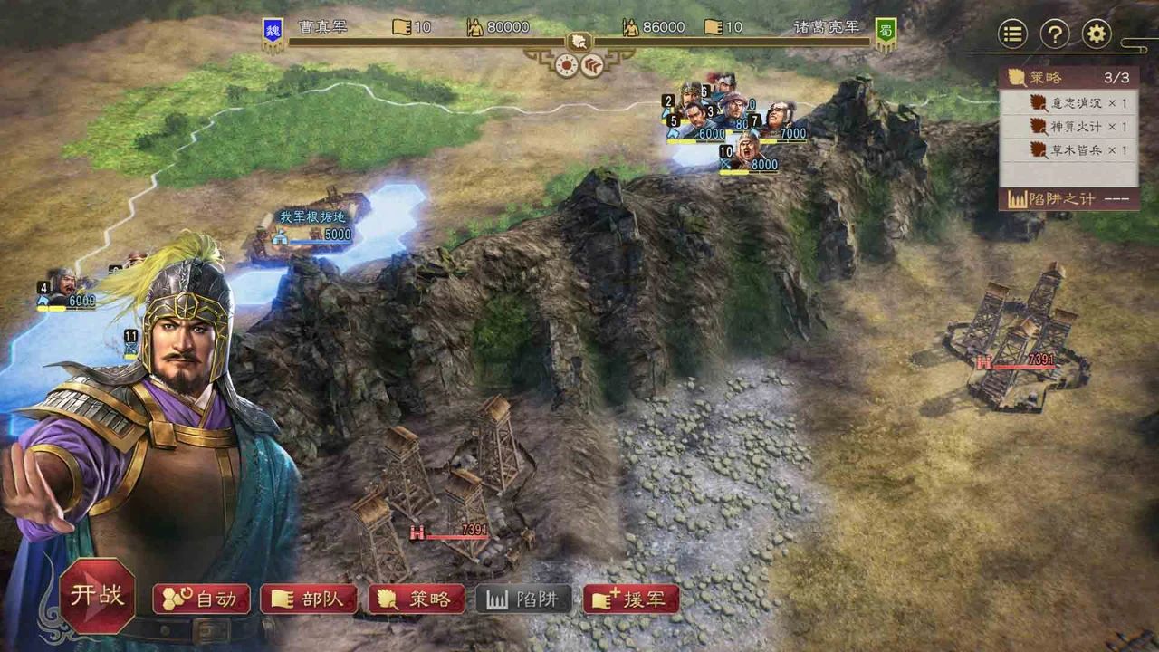 除此之外,司马懿的“狼顾”会开场降低战意,有比较强的压制作用;诸葛亮的“卧龙”在策略使用后可以让全队再次使用战法,大规模作战中刷新战法的机制可以说完全能扭转战局。