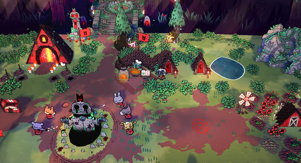 《咩咩启示录(Cult of the Lamb)》是一款非常有趣的轻度动作类Rogue迷宫探索游戏,在游戏中你将扮演一只可爱的小羊羔,从献祭的厄运中逃脱之后决心干一番大事业——创立自己的教派和净土,消灭其他异教徒,最终统一大陆。