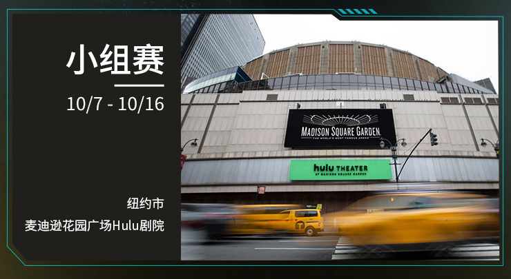小组赛:10 月 7-10 日,10 月 13-16 日,纽约市麦迪逊花园广场 Hulu 剧院;