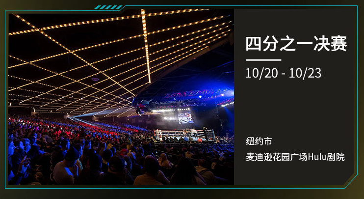 四分之一决赛:10 月 20-23 日,纽约市麦迪逊花园广场 Hulu 剧院;