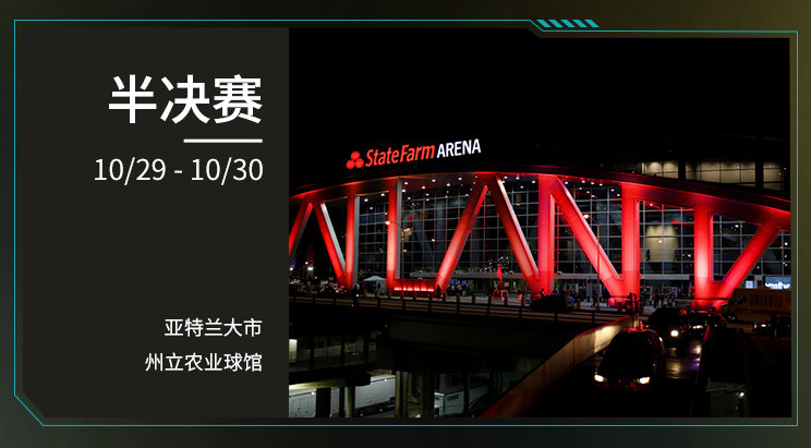 半决赛:10 月 29-30 日,佐治亚州亚特兰大市州立农业球馆;