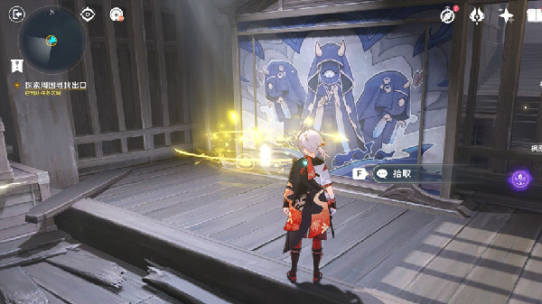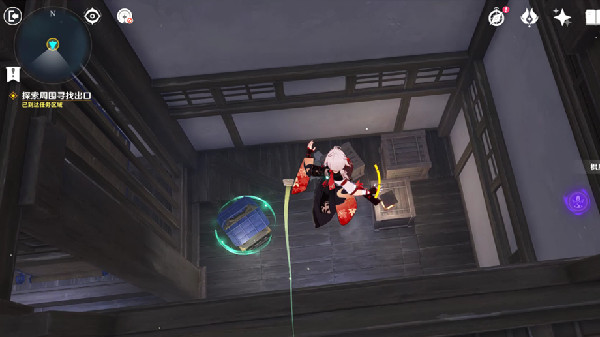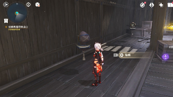 3、上去之后,顺着路一直走,会来到下一个房间。房间前有一个拉杆,先拉一下,让房间旋转。