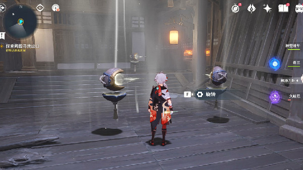 6、在跑台旁边拿到第二个御守,接下来旋转这两个机关,开启炮台即可。