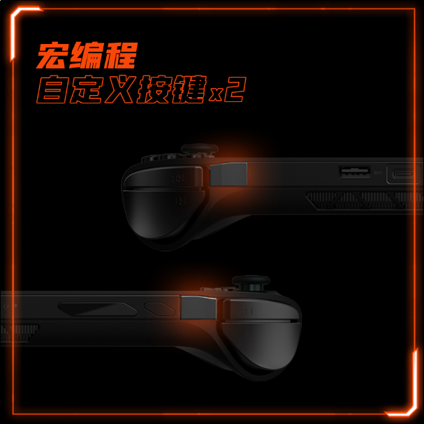 按键方面,除了历代产品上的常规组合功能按键之外,OneXPlayer飞行家F1在机器顶端两侧各配备了一个自定义按键,玩家可根据需求将这两个案件设置指定按键功能。