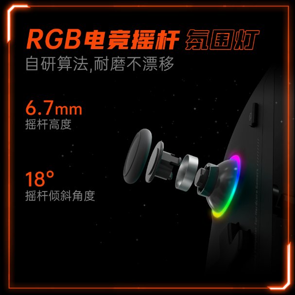 此外,这款机器在两侧手柄底部采用了可拆卸式外壳,预留RGB铭牌卡位,用户可根据需求定制个性化RGB铭牌,配合RGB摇杆灯,电竞氛围十足。