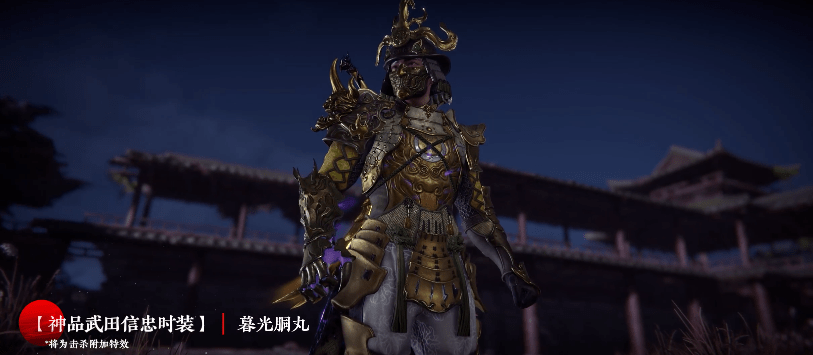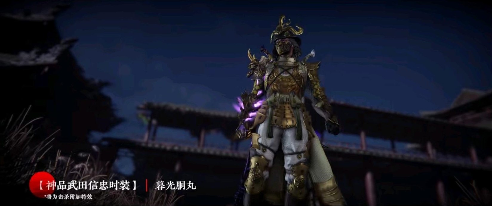 永劫无间无妄宝鼎红皮为武田信忠时装暮光胴丸,双刀皮肤凤求凰,暮光胴丸还拥有击杀特效