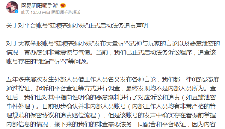 最近有个账号名为建模苍蝇小妹的网友自称是阴阳师内部人员引发热议,下面小编为大家带来阴阳师苍蝇小妹事件,感兴趣的小伙伴一起了解一下吧。