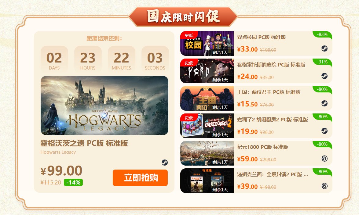 购买游戏前,记得领取国庆88折优惠券哦,购买游戏更实惠。