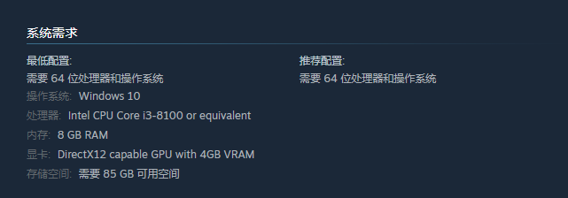 显卡: DirectX12 capable GPU with 4GB VRAM