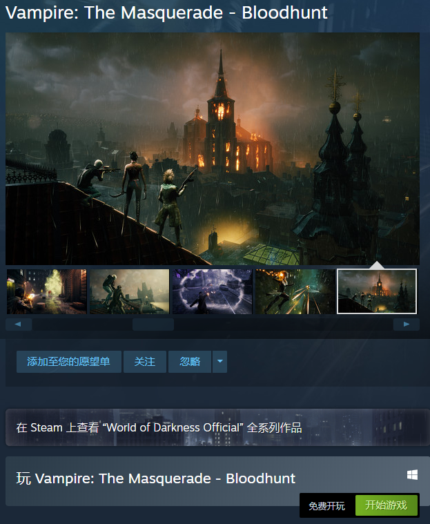Steam游戏名“Vampire:The Masquerade - Bloodhunt”