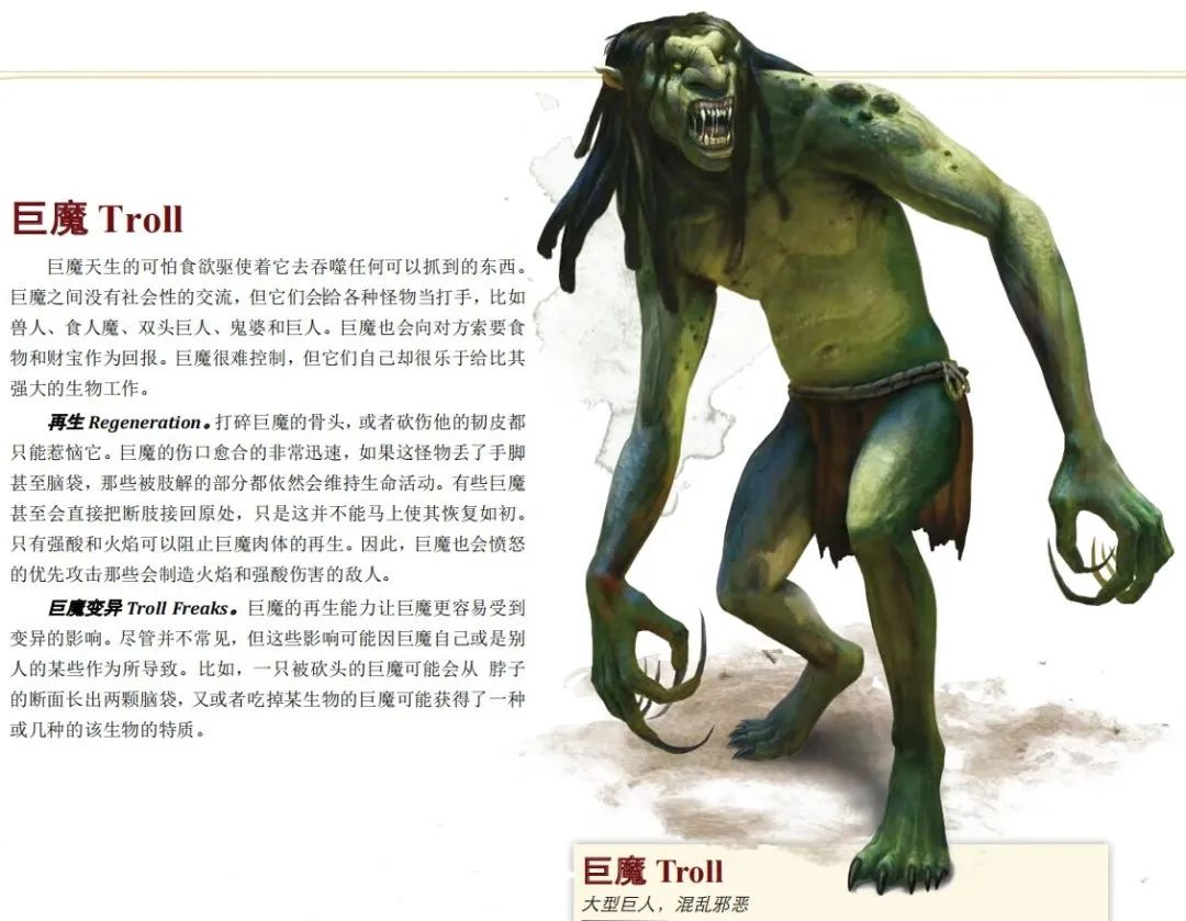 DND规则书中对于巨魔的介绍