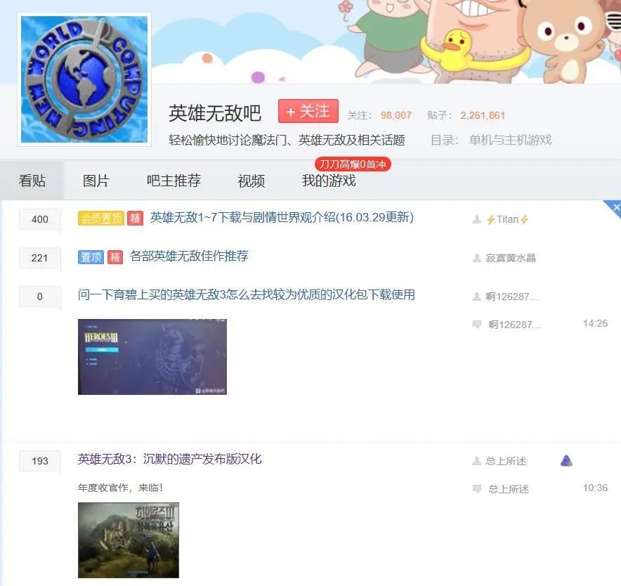 而平时混迹在“英雄无敌3吧”中的人,甚至比起刚刚提到的“英雄无敌吧”的人要多得多。