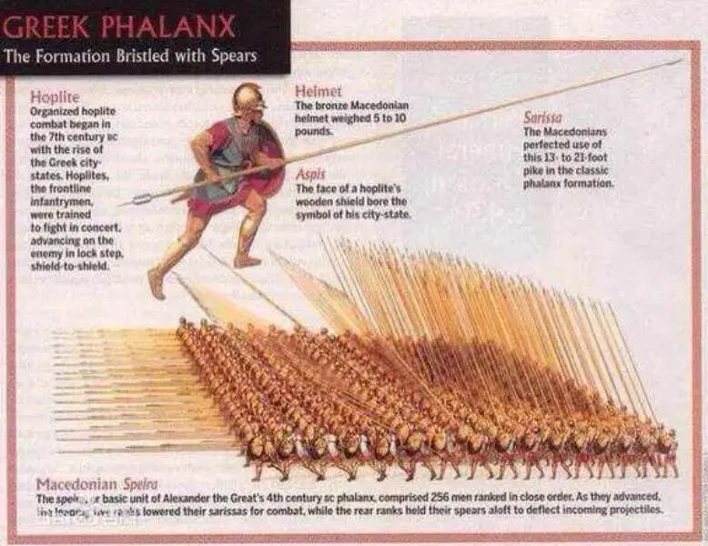 当然马其顿方阵使用的也不是普通长枪,而是两人一组,控制六到七米的超长枪,数百人密集结阵,才能对骑兵造成有效的杀伤。