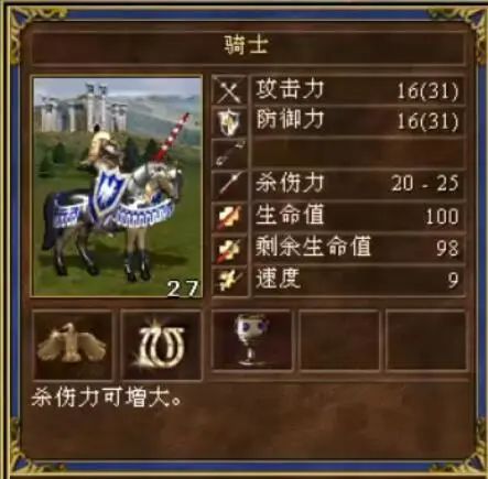 举个例子,城堡的六级兵骑兵(被称为“白骑”)在游戏的兵种说明中有一句简单的描述:“杀伤力可增大”。这句话所隐藏的机制其实是白骑能通过走更远的距离,来造成更高的伤害。