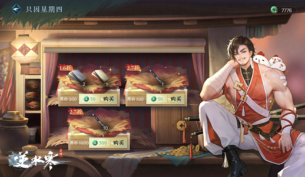这个季节,“V我50”的风终究还是吹进了逆水寒!KFC联动期间的星期四(4月18日、4月25日、5月2日),只因星期四小店特别上架【十凿一桶】售价为500纹玉,内含10个鉴石神凿·绑。