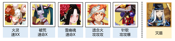 御魂速度配置:火灵二号位带速度追月>破荒二号位速度三技能满丑女>雪幽魂速度命中清姬>招财/遗念火攻攻攻满3技能食灵>破荒攻攻暴伤满3技能小黑