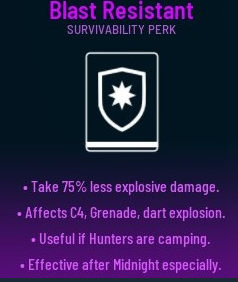 爆炸伤害降低75%(C4、榴弹、金钱飞镖的爆炸等)