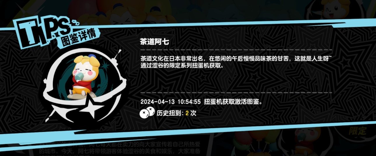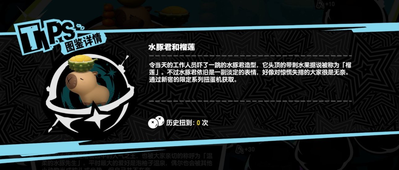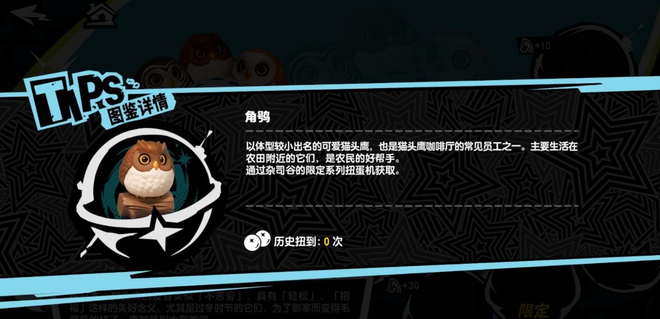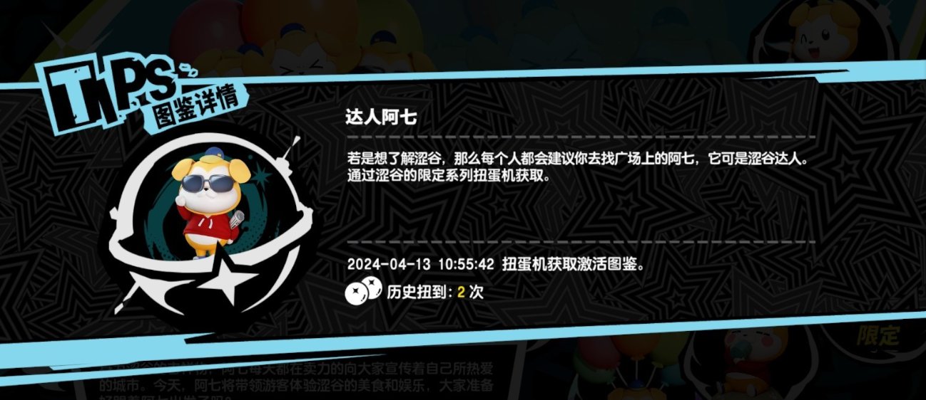 在街边排列的扭蛋贩卖机中投入硬币,就会掉落扭蛋模型,不同地区会有不同的限定款式。目前版本扭蛋机位于三个地区:涩谷、杂司谷和新宿。完成支线任务引导并解锁扭蛋机后,即可在左上角地图下方点击对应地区的扭蛋机快速传送。