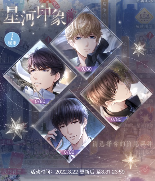 以上就是恋与制作人星河印象活动攻略了。看到这里的小伙伴想必都很期待这次的活动上线吧。想要获得更多游戏相关内容请继续关注多特手游哦。