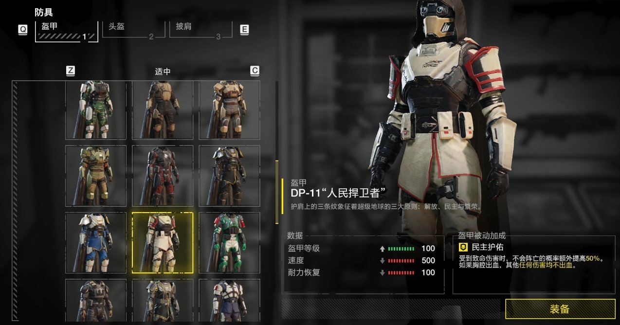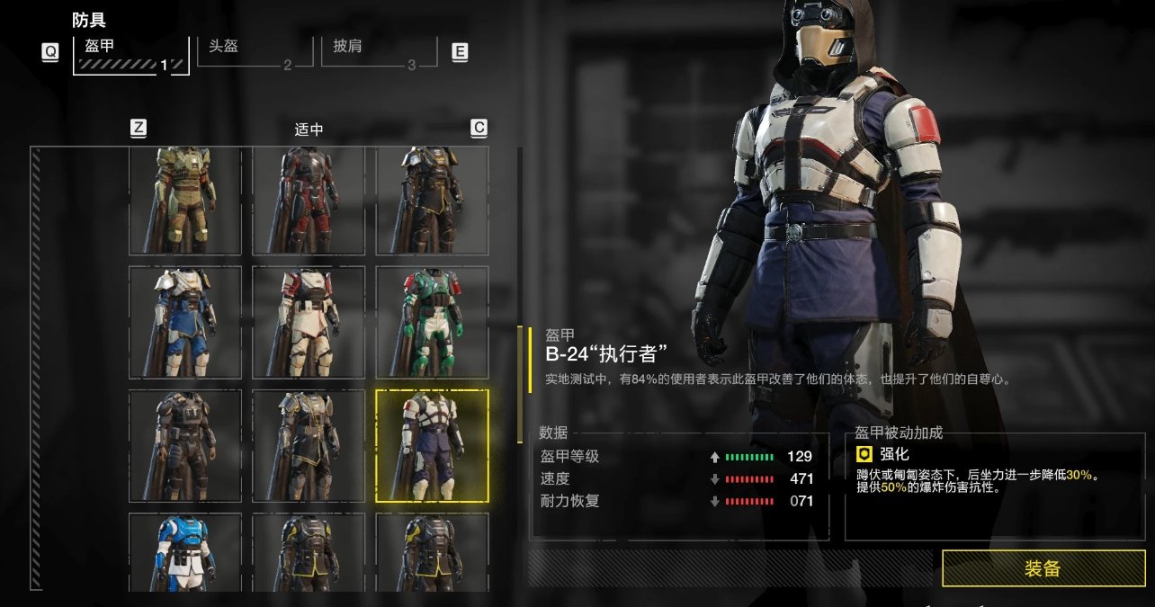 那么以上就是关于绝地潜兵2中型护甲有哪些的全部内容了,中型护甲在防护、速度和耐力上最为平衡,许多玩家都会选择穿戴中型护甲。