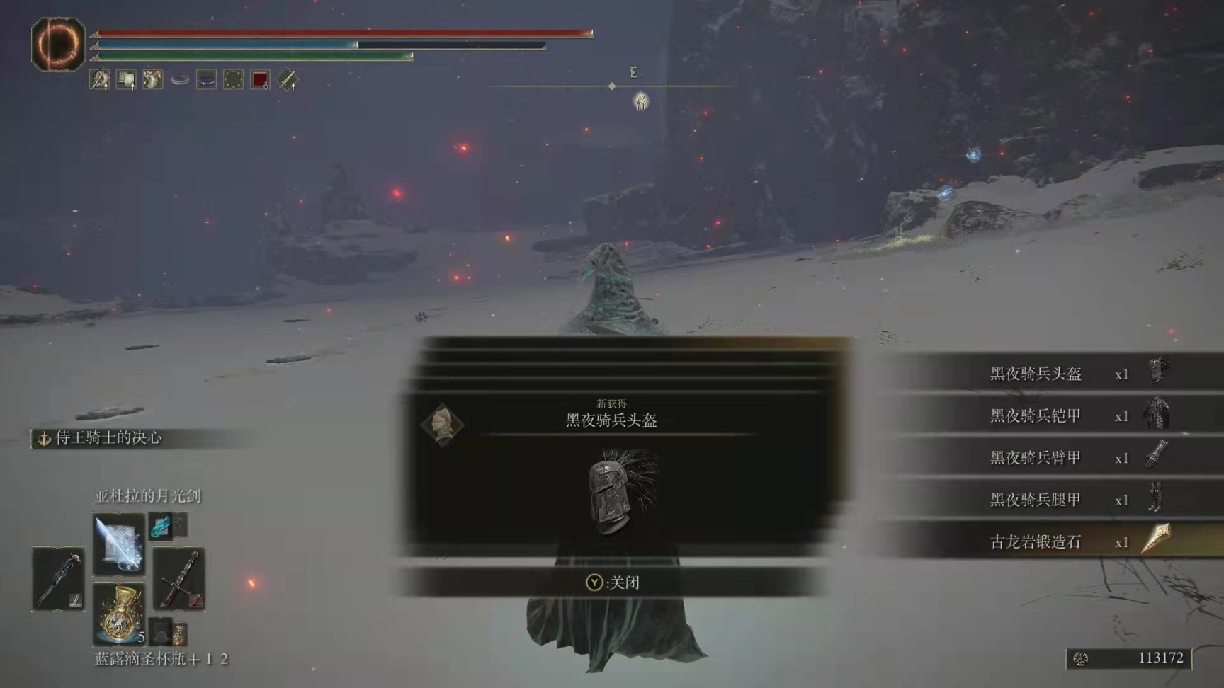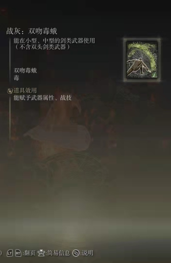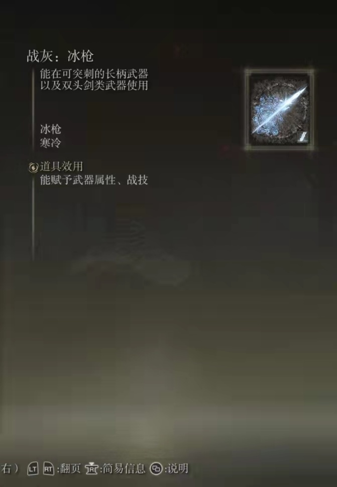 掉落一个战灰和一把戟,这里要注意的是,如果你获得过这两个道具的话,再来打他就不会掉落