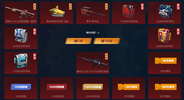3、抽奖:玩家可使用钥匙进行抽奖,抽奖可以获得永久道具或通行证的经验值,永久道具发往暂存箱,经验值直接到账并增加通行证的经验。