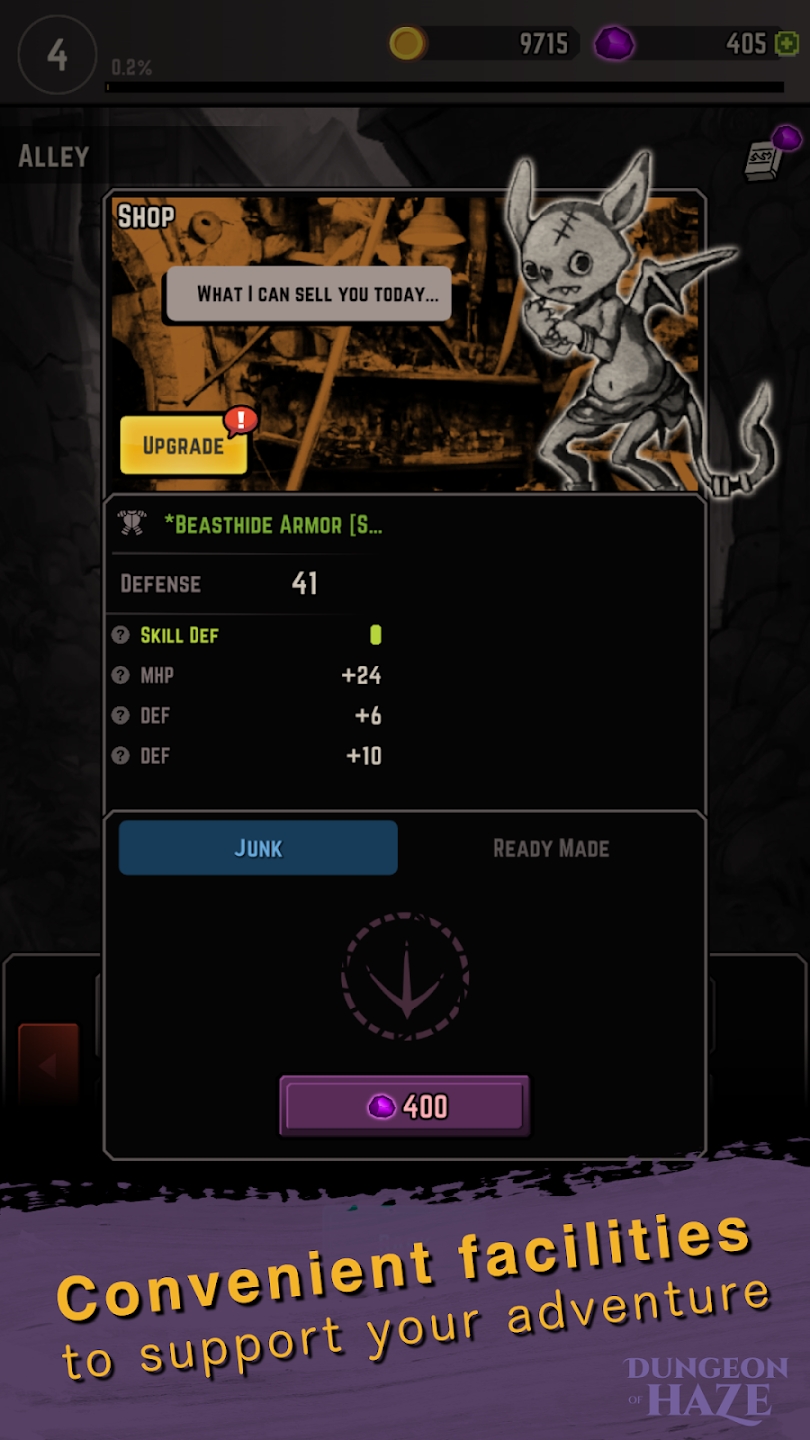 DungeonOfHaze是一款半自动化的角色扮演游戏,半自动化的游戏设置让你省力不少,自动战斗,关卡设计得非常丰富,玩家可以自由地挑战它们,赚取大量金币。快来下载试试这款游戏吧。