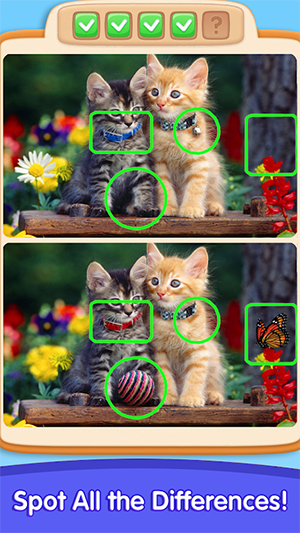 你能找到它吗Can you Spot IT?是一款有趣的脑筋急转弯和益智游戏,游戏目标很简单,那就是找出两张近乎相同的照片中的差异之处,考验玩家的逻辑思维和注意力。游戏提供有一系列关卡, 每对图片都隐藏了5个差异,你能找到吗?