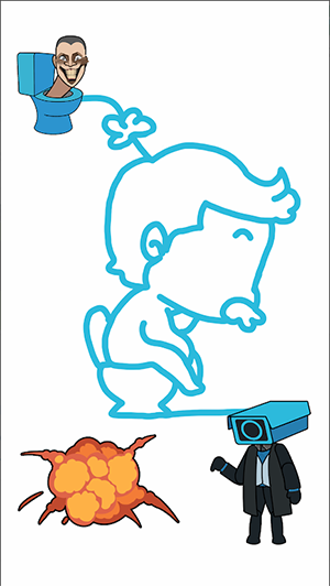 斯基比迪冲刺Toilet Run是一款画线益智解谜游戏,以可怕的马桶人和摄像头人为主角。游戏中,玩家需要通过画线来帮助摄像头人成功到达终点,避开沿路的陷阱和障碍,找到最快到达的路径,考验玩家的思维能力。
