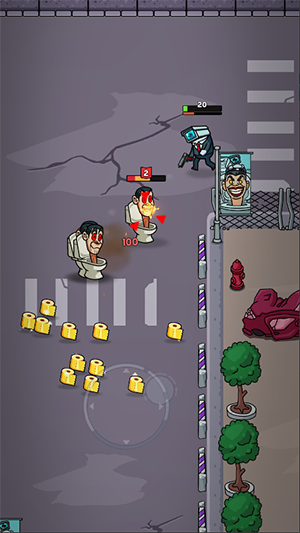 厕所怪物生存是一款俯视角动作射击生存冒险游戏,臭名昭著的厕所怪物正在横冲直撞,踏上末日世界的冒险之旅,帮助摄像头人对抗厕所怪物。城市面临着前所未有的威胁,你需要负责保卫城市,升级你的武器库,战略性的使用力量来赢得最终胜利。