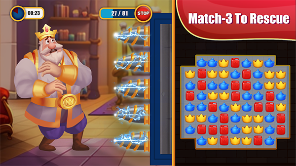 一款结合三消难题和趣味救援玩法的游戏,加入拯救国王的冒险之旅,决定王国的命运,使王国恢复荣耀