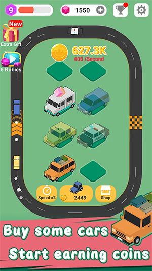 随着金币开始滚滚而来,通过将收入再投资购买更多汽车来扩大您的收藏