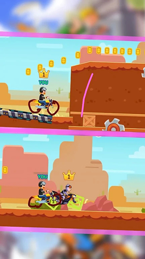 卡通的游戏画风,不断进行竞速挑战,赢取更多的奖励