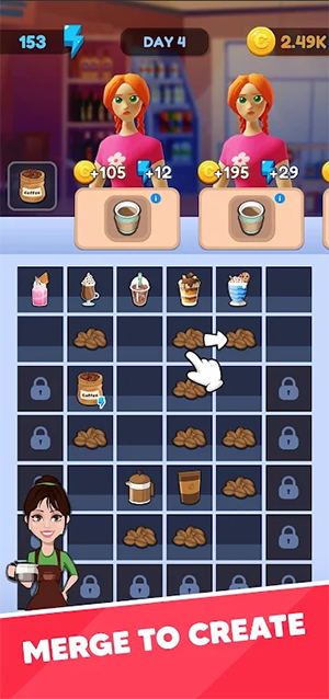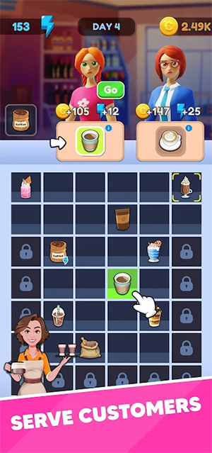 合并与服务MergeServe是一款有趣的休闲模拟游戏,提供合并、清洁和餐厅经营玩法。在游戏中,建立你的咖啡馆业务,玩家需要合并相似的食物来创造新的美食,服务你的客户并赚取更多收入。